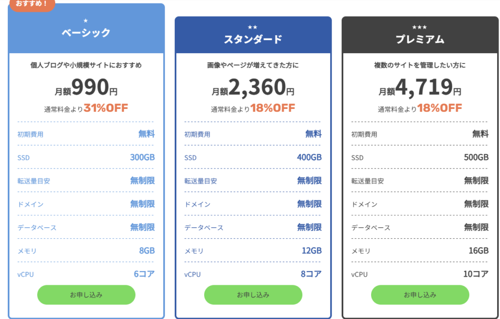 ベーシック(個人ブログや小規模サイトにおすすめ)約643〜1,331円